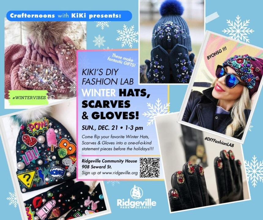 Ridgeville Park District will host KiKi’s Fashion Lab, a hands-on holiday accessory workshop from 1 to 3 p.m. on Sunday, Dec. 21, at Ridgeville Community