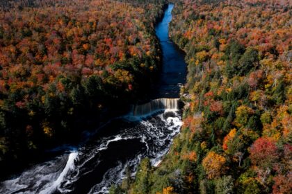 Michigan’s most famous waterfall is surrounded by an explosion of fall color right now