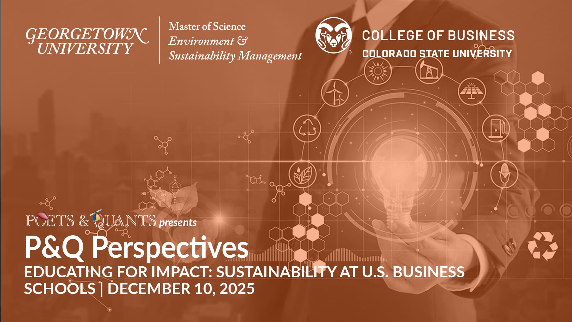 Join our webinar on Sustainability at U.S. Business Schools featuring leaders from Georgetown University and Colorado State University. Explore how top programs embed sustainability and ESG into business education, connect students with real-world impact, and prepare graduates to lead responsibly in a changing world.