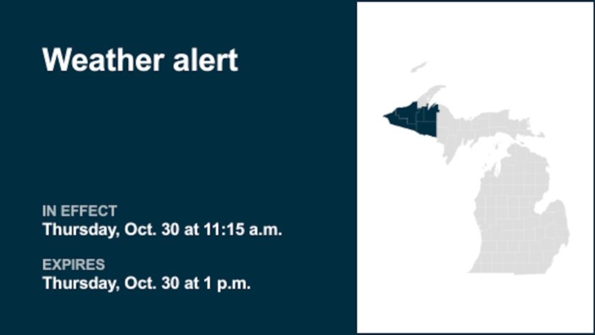 Weather alert issued for Upper Peninsula Thursday afternoon