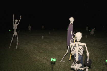 ‘Skeletons in the outfield’: Paw Paw woman’s Halloween display combines baseball, fright